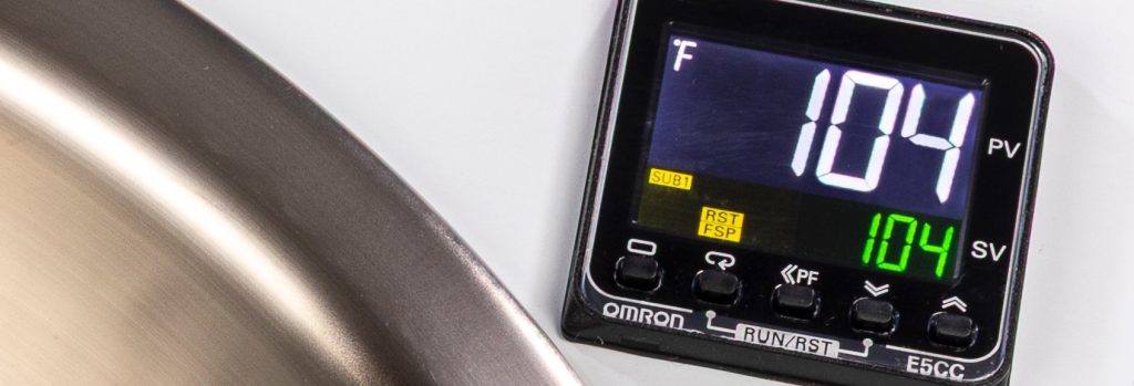 Temperature is controlled by regulation of heat input based on current fluid temperature.