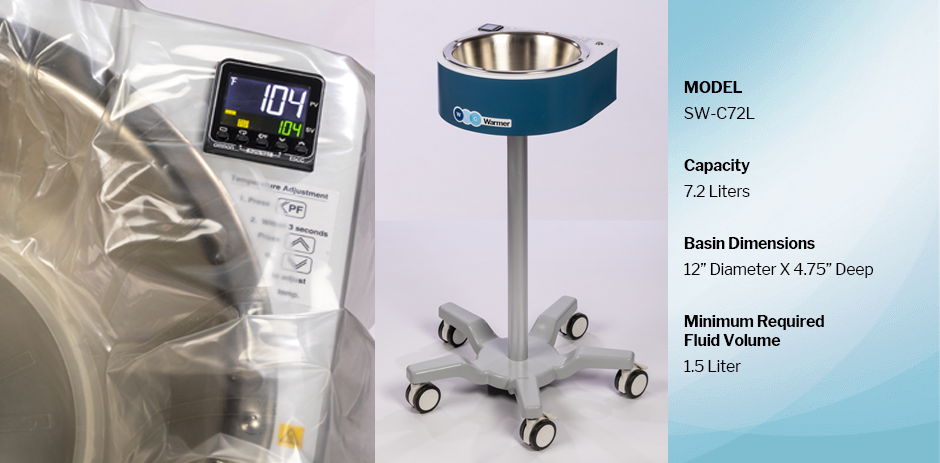 The risk of breaches to the sterile field caused by “burns” or “holes” in the traditional sterile warming drapes reduces confidence. WEG Warming Systems are built to precisely control temperature, aid drape placement, and provide additional protection to help to prevent drape burns or punctures which can result in contamination of the sterile, warmed Irrigation Fluid. WEG Solution Warming Systems assist in keeping the patient warm while maintaining a sterile environment, helping support the team’s confidence in great surgical outcomes.